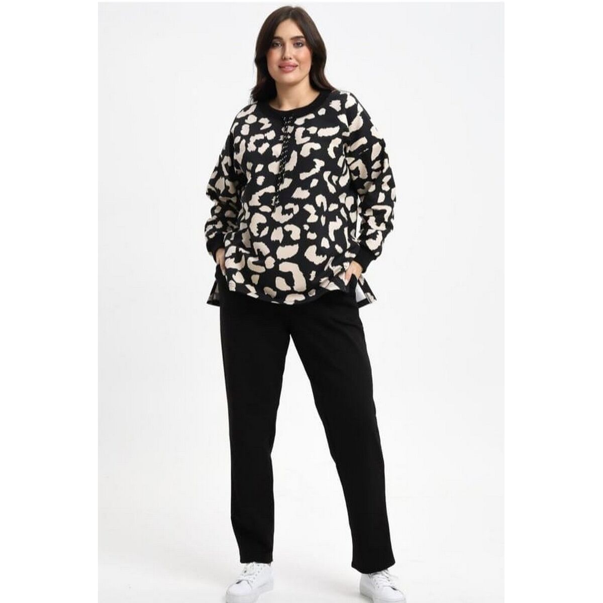 Комплект кофта брюки Оливия леопард с черным