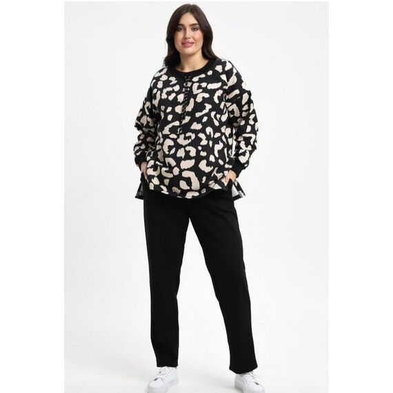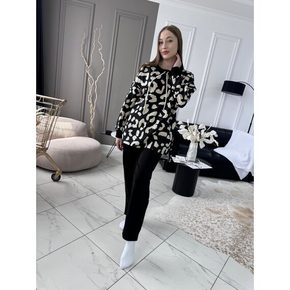 Комплект кофта брюки Оливия леопард с черным