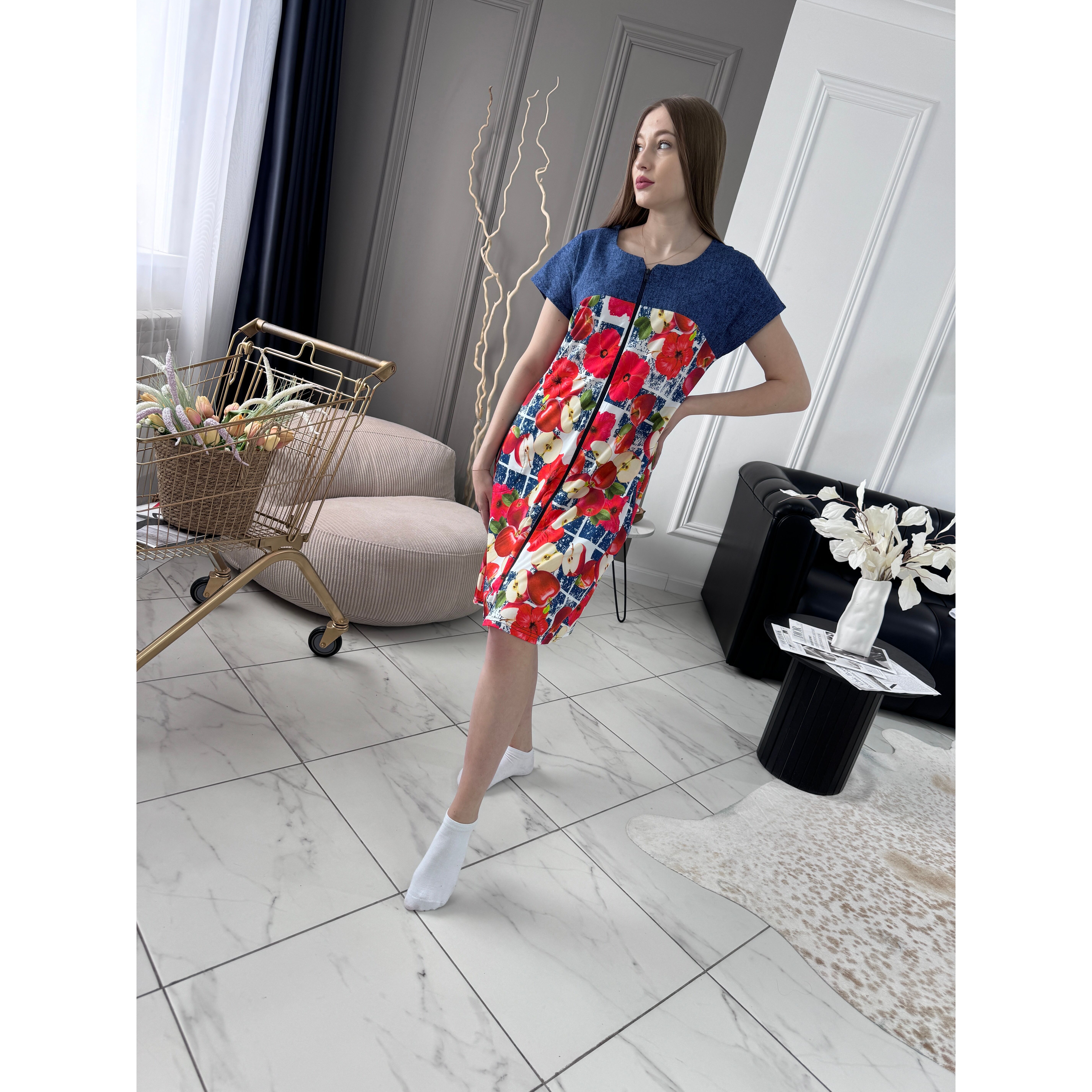 Халат 242 синий с красным