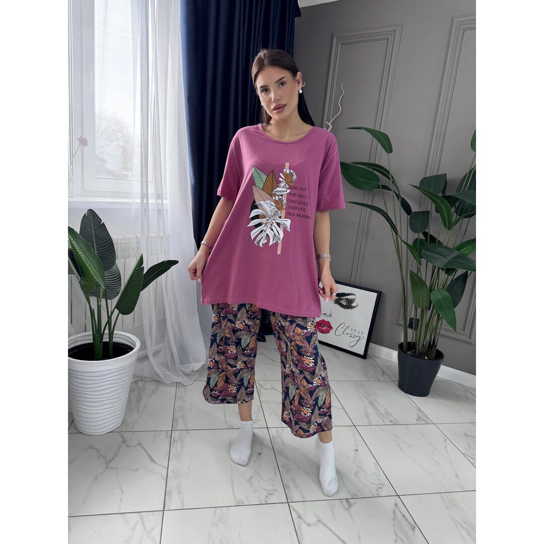 Комплект футболка бриджи 016 темно розовый